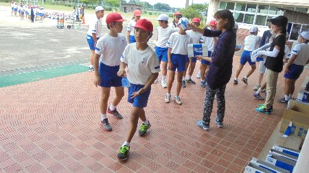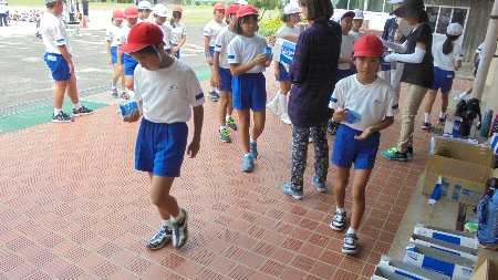 昨日金曜日は、午前中目一杯全校運動会の練習に頑張りました。だいぶ秋らしくなった陽気でしたが蒸し暑く、思いの外体力を消耗しました。こんなときに水分補給のドリンクを使わせてもらいました。これは地域型スポーツクラブパレットより体育を指導していただいている西田さんを通して以前いただいたものです。スポーツ飲料の会社が熱中症対策の講座を開いたとき配布してくださったものだそうです。