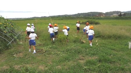 先日、畑の片付けをしました。この畑から今年1年たくさんの収穫がありました。なんといっても指導してくださる先生が素晴らしいから。盛戸さんにはたいへんお世話になりました。土おこし、畝作り、苗植え、支柱立て、草取り、水やり・・・こんなにたくさんの仕事があるんだ、こんなにたくさんお世話するから実がなるのだということを学ばせていただきました。ありがとうございました。