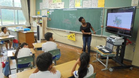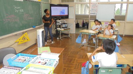英語の先生シャンさんが子どもたちに自分のふるさとテキサスについて紹介しています。もちろん英語で。皆さんはテキサスと聞いてどんなことを思い浮かべますか?わたしは、やはりダルビッシュですね(笑)シャンさんはテキサスの広さを日本地図と重ね合わせて説明していました・・・なんと面積は日本の2倍、アメリカは広いのですね。すべてが勉強になります。