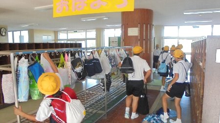 夏休みもあと1週間、今日は水泳記録会、稲刈りをするために高学年が登校しました。どの顔も真っ黒元気いっぱいでした。