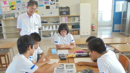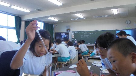 6年生が来年春の進学に向けて練習? 高松中学校で半日の中学生気分を体験しました。前半は3つの教室に分かれて中学校の先生から授業を受けました。英語、図工、理科です。どの教科も高松小学校の子どもたちと一緒です。途中、中学校の越中校長先生も見に来てくださいました。中学の勉強は、さぞむずかしいかと・・・楽しい勉強ばかりでした。