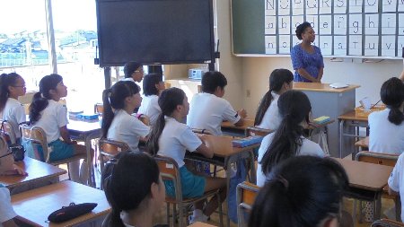 先日2学期から本校の英語教育をアシストしてくださる先生が赴任したことをお知らせしました。名前はシァンさんです。今日は、大海小学校での勤務日でした。登校日だった3・4年生とはやくも交流していました。上手に挨拶や自己紹介ができたかな。中学校の授業体験では6年生が実際に授業を受けました。2学期からもたくさんのことを習っていきます。