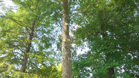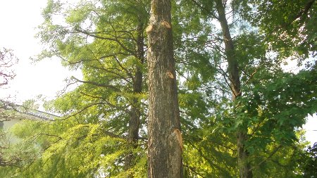 学校の正門を入ると、大海小学校のシンボルツリー、大きな大きなメタセコイアの木があります。高さは、三階建ての学校より高いです。大きすぎて根元の松に陽が当たらないため、枝を切っていただきました。上の方まで見えるようになりました。なにやらカラスの巣が・・・秋になるし葉が落ちて枝だけになるのでそのときしっかり確かめます。