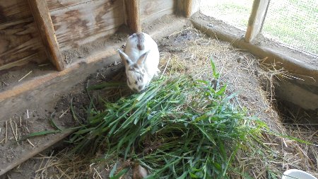 今日は緑の草をもらって美味しそうに食べていました。水もたっぷり補給されていました。