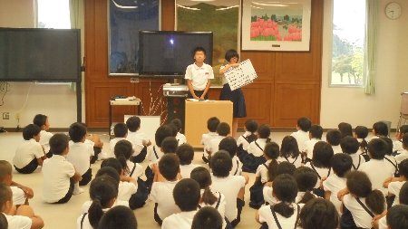 見終わった後たくさんの子どもたちが全員の前で感想を話してくれました。写真でもわかるようにきちんと話す人の方を向いて聞く態度がすばらしい。