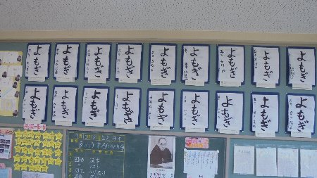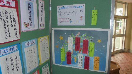 児童玄関は、季節遅れの七夕飾りがまだ掲示されています。これは今月の生活目標の様子です。「人の役に立つことをしよう。」・・・どんな良いことをしているのでしょう。通知表渡しのおりにちょっと足を止めて下さればと思います。