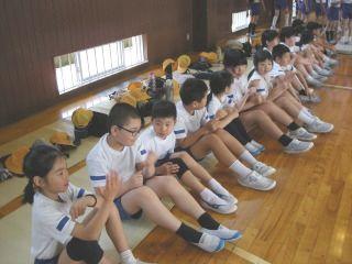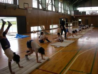 本日午後から宇ノ気小学校体育館で器械運動交歓会が行われました。