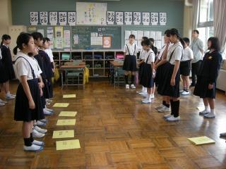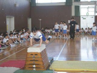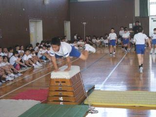 4年生は体育で器械運動の演技を披露しました。先日の本番と同じような緊張感の中できびきび演技していました。