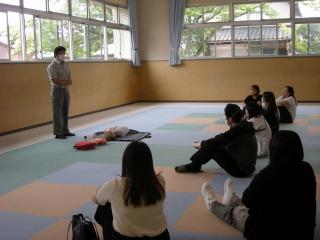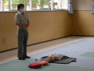 まず、夏休みプール開放のためにPTA救命講習会をプレールームで行いました。保護者を対象に高松消防の職員にご指導していただきました。