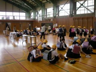 そして、最後に引き渡し訓練です。震度5弱の地震が発生した想定で、保護者へ児童を引き渡す訓練を行いました。保護者の皆様には多数参加していただき、誠にありがとうございました。