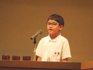 あたたかい家族のふれあいを「ぼくのびみょうな弟」という題で、ユーモアも交え、上手にお話しました。多くの人たちが見ている前で話すのは緊張したと思いますが、これまでの練習の成果を十分に発揮しました。とてもよい経験ができたのではないでしょうか。よく頑張りました!