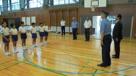 これまで放課後、自転車安全大会の練習が終了しました。水曜日には津幡署長さんと交通安全協会会長のお二人が激励に来てくださいました。