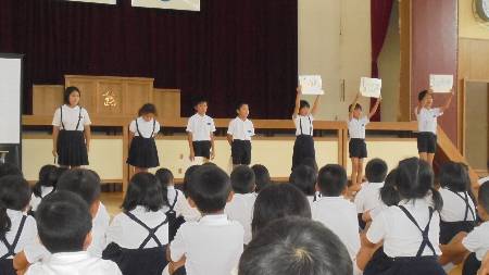 今年度初めての「大海っ子集会がありました。とっても充実した内容でした。学校全体に一体感ができ、とっても楽しいひとときでした。どんな中身だったかお家の人に教えてあげてくださいね。