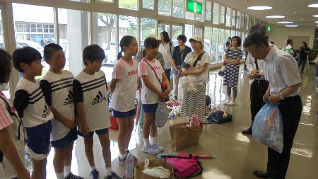 1年生と6年生が一緒にプールに入りました。というか、6年生が1年生をプールに入れてあげました。学校のお兄さんお姉さんとして弟妹達のおせわをしてあげ・・・とにかく一緒に仲よく楽しく活動しました。おかげで1年生は深い大きなプールに入ることもできました、おんぶしてもらって。
