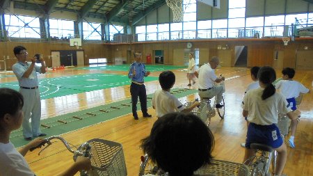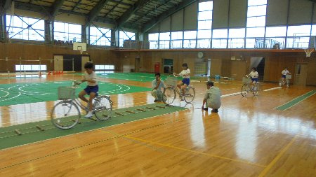 精鋭6名が体育館で津幡署と市役所から指導の先生方を迎えて練習開始しました。体育館いっぱいにいろいろなコースが用意されて、早速練習開始しました。どのコースもとても高度な技術が必要で、難しかったです。これに加え、実際のコースでの安全確認、交通ルールの筆記テスト等も練習します。2年計画、来年この子達が6年生になったとき優勝できるといいです。全国大会を目指して頑張ります。