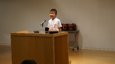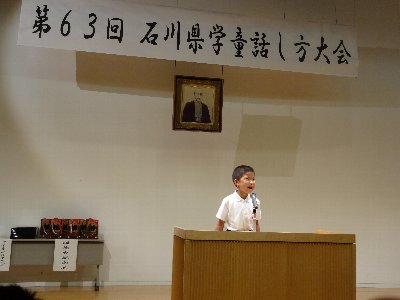 かほく市が生んだ西田幾多郎先生にちなんで、毎年石川県哲学館で小学生が集まり話し方大会が行われます。先日このコーナーでリハーサルを紹介した鍛冶澤くんが大海小学校代表として出場しました。「将来の夢」・・・もうすでに将来の仕事に目覚め、努力していることを、大きな声で表情豊かにたくさんの聴衆の前で話しました。
