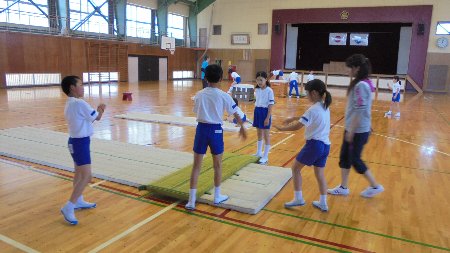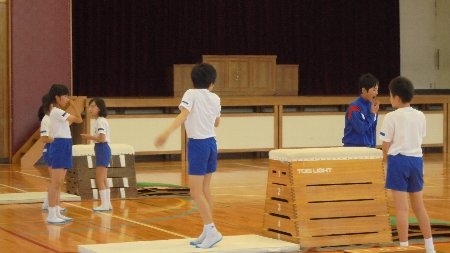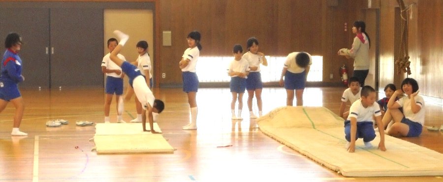放課後、4年生は器械運動の練習に汗を流しています。先週はクラブパレットにコーチをお願いしました。今日は5限目の体育の時間に校内の先生、6年生が一緒に練習してくれ、教えてくれました。6年生も2年前けんめいに技を磨いていました。今日は4年生の先生をしてくれました。ありがとう。