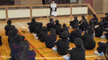 もう一週間近く集団登校していますが、今年も1年間の安全のため下校前に体育館に全員集まり、指導したり、班ごとに集まったりして、下校時の約束ルールの再確認をしました。担当の先生からは、「歩き方」「時間を守る」「休むとき」・・・など5つの話を聞きました。