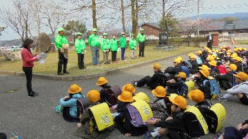 玄関では、大海小学校安全ボランティア隊の方を紹介し、大きな声で「よろしくお願いします」のあいさつをして、集団下校しました。今年も中田隊長を始め、14名の皆さんにお世話になります。どうぞよろしくお願いします。