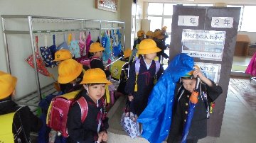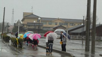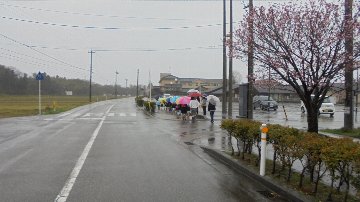 昨日とは打って変わってあいにくの雨、かなり降って登校も大変でした。安全ボランティアさん高学年リーダーといっしょに今日から新入生も登校です。昨日からスタートした春の交通安全、PTA職員の交通指導も行われました。1年生は先ほど職員と下校しました。