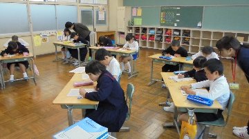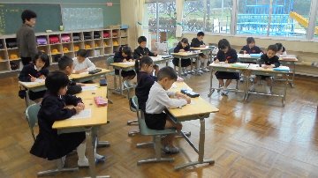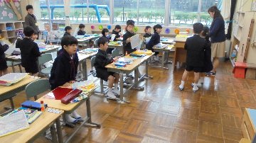 朝学習スタート、8時10分からどのクラスも元気いっぱい。学習の後は朝の会、今月の歌が大きな声で聞こえています。給食も始まります。2日目からフル回転です。