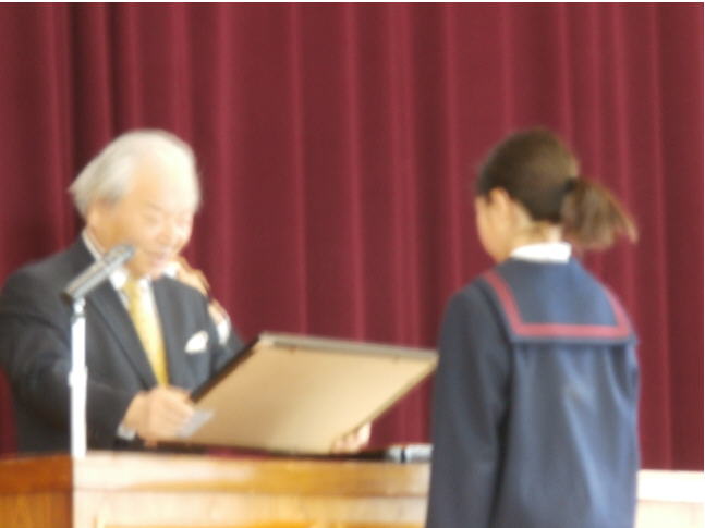 先週3月4日(金)に大海小学校教育後援会長、西隆一さんが来校されました。2年間に渡り教育後援会長をしていただき、本当の有り難うございました。学校のために貴重なご意見やご指導を賜りました。児童だけでなく、職員一同感謝しております。