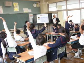 3限目に青色申告会の方々に来校していただき、6年生の租税教室を行いました。税の必要性についてわかりやすく説明していただきました。おかげで、子どもたちはこれまでの税金に対するイメージが変わったようでした。また、1億円の札束レプリカを持たせてもらい、お金の重さも体感しました。青色申告会の川原様、山口様、子どもたちが楽しく、興味深く聞けるように工夫していただき、ありがとうございました。