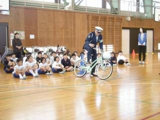 2.3限目に2~4年生の自転車安全教室を行いました。警察や交通安全推進隊、PTA環境整備部の方々に来ていただき、指導していただきました。まず映像を視聴し、その後、体育館で自転車に乗って練習しました。PTA環境整備部の方々には、自転車の整備点検もしてもらいました。道路上でも交通ルール、マナーを守って安全に乗ってほしいと思います。