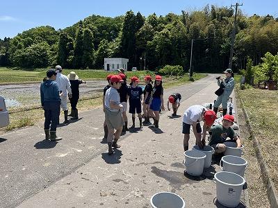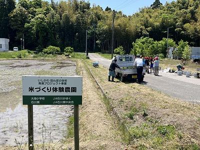 大海小学校では、5年生が毎年「米作り体験」を行っています。