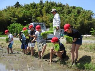米作りの先生や地域の皆様、保護者の皆様のご指導・ご協力のもと、田植えを行うことがました。