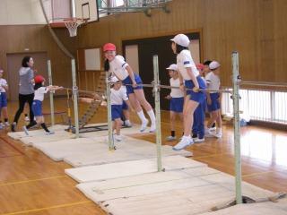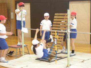 今、4年生は6/4(火)のかほく市器械運動交歓会に向けて、鉄棒、跳び箱、マットの練習を頑張っています。今日は5年生が4年生にお手本の演技を見せたり、逆上がりのコツを教えてくれたりしました。おかげで4年生はよい演技のイメージをもつことができました。5年生の皆さん、ありがとう。