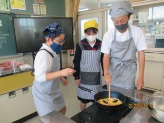 6年生の皆さんが家庭科の調理実習でスクランブルエッグを作りました。グループの人たちで協力しながら、おいしいスクランブルエッグを作ることができました。家でもチャレンジしてみてはどうでしょう。