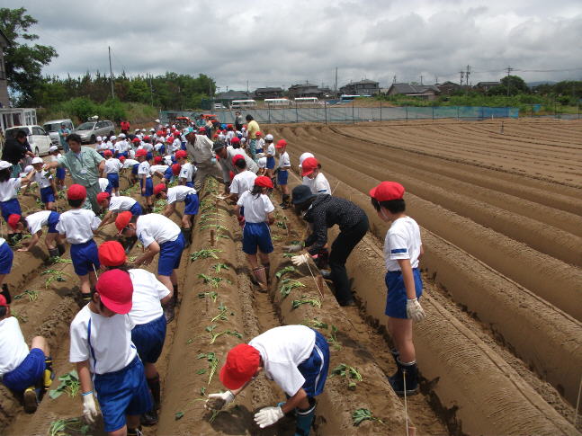 2年生が、かほく市の特産品さつまいもの「かほっくり」を植えました。この事業は、かほく市大崎の喜綿さんが毎年3小学校の2年生を招待して、収穫するまでお世話をしてくださいます。今年も10月には大きな芋を収穫できると思います。2年生の皆さん、期待して待ってください。