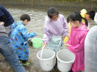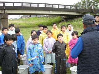 2限目に大海川でアユの放流を行いました。朝からの悪天候でしたが、放流時に雨は止み、天気が4年生の味方になってくれました。5~8㎝ほどに育ったアユの稚魚をバケツに入れてもらい、「大きく育ってね」と願いを込めて大海川に放流しました。ふるさと学習の一環として例年のように、大海川漁業協同組合の方々のご協力いただきました。ありがとうございました。