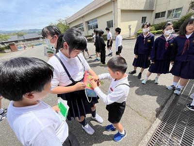 昼休みの時間に縦割り活動でのなかよし班「はじめましての会」がありました。自己紹介や班のめあてを確かめた後、リーダーの6年生が準備したクイズやゲームで一緒に楽しみました。これから運動会や仲良し活動などの様々な行事や活動で協力することになる班活動のスタートは、とても楽しそうで良い雰囲気でした。