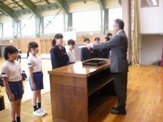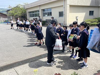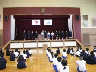 5月の月始めということで全校集会と前期児童会役員任命式を行いました。全校集会では、校歌、校長先生のお話、4月の生活目標の振り返り、5月の生活目標のお話がありました。その後、前期児童会役員任命式を行いました。ステージ上で企画運営委員会、各委員長が全校児童の前で堂々と意気込みを話す態度がとても立派でした。リーダーの仕事を引き受けてくれた皆さん、ありがとう。今年度の大海小学校を引っ張っていってください。