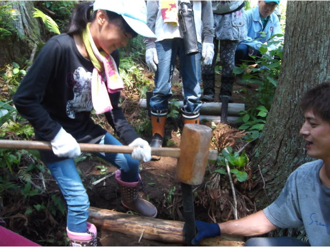 晴れ渡って大変暑い日でしたが、学校林の中は大変涼しく、気持ちよく仕事をすることができました。樹木の下草刈りと山道の階段の補修が今年の仕事でした。山の中を歩いていると、途中に大きな穴を掘った後がたくさんありました。地域の保護者は、イノシシの仕業と教えてくれました。イノシシは山の中のミミズを好物にしてどこにでも穴を掘るようです。自宅の地域ではイノシシの被害を聞いたことがないのであれほど固い地面を掘る力にびっくりしました。改めて野生動物の凄さを感じました。