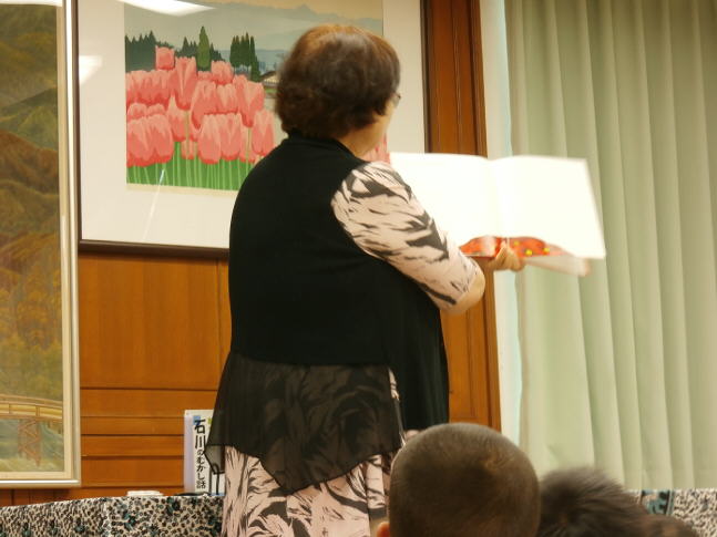 今年度最初のお話会がありました。お話ボランティア「やまんば」さん2名が来校し、全校児童に本の読み聞かせをしてくれました。「ヤカンのおかんとフトンのおとん」という題名でした。