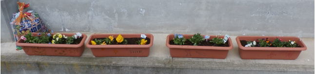 午後1時過ぎに、クラブパレットからプランター4つにパンジーやデージーを入れた花が届きました。十数年前は花は種から作るものだと思っていましたが、学校が忙しくなり苗を買って植えることが当たり前になりました。予算の少ない学校なので、学校中に花いっぱいにしたくてもなかなかままならず、こういうふうに思いがけなくいただけるのは本当に嬉しいものです。