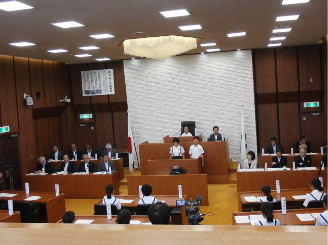 11日午前9時30分からかほく市議会庁舎で「第4回子ども議会」が行われました。かほく市の小学校6校の児童が市に対する思いや考えを市長に提案しました。毎年6年生が考えるので、それぞれの思いはあるにせよ、同じような提案がされているような気がしました。実際、子どもが思いつく突拍子のない発想はありますが、学校の代表として訴える内容ではないことが多いです。大海小学校は、「お年寄りに優しい施設づくりと交流」、「子どもから大人まで楽しめる競技上や施設を作ってほしい」と訴えました。市長さんから実現は難しいけれども、郷土を愛する心が伝わってきましたと返答され、代表者2人は、とても嬉しそうでした。こういう機会を捉えて、みんなの前に出て物怖じせず積極的に発言できる児童を育てて参ります。