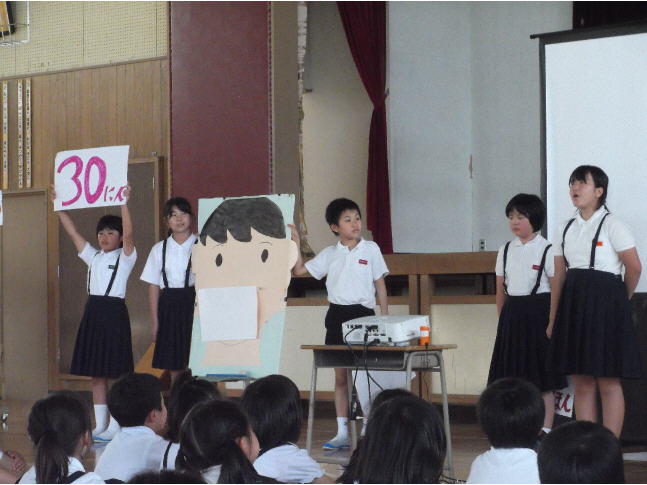 授業参観後は体育館で学校保健委員会を行います。学校歯科医の飯利先生のお話を聞くことができます。生涯にわたって自分の体を大切にするよう保険や学級活動の授業で学習を深めて参ります。
