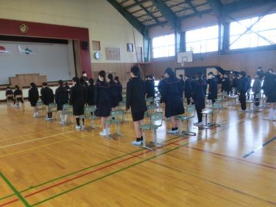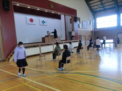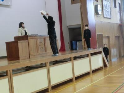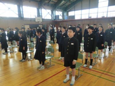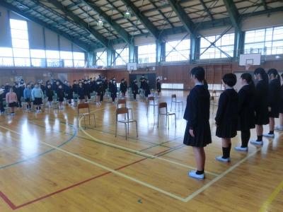 本日、5限目に体育館で卒業式の全体練習がありました。全校揃っての初めての練習です。主に別れの言葉と歌の練習を行いました。各教室で今まで練習してきた成果が発揮されていました。本番に向けて、予行も含めて練習できるのはあと4回です。頑張りましょう!