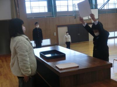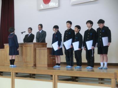 本日、卒業式の全体練習に続いて大海小学校教育後援会児童表彰式を行いました。大海小学校教育後援会は、大海地区の児童の健やかな成長を応援するための組織で、毎年この時期にスポーツ賞、学芸賞、善行賞、継続賞、読書賞という名目で、頑張った児童に表彰状と副賞の図書券が贈呈されています。今年度も、のべ61名の児童が表彰されました。