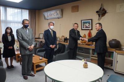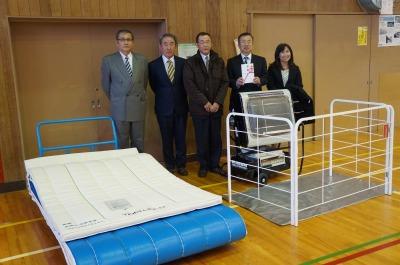 本日、武蔵会(昭和53年度高松中学校卒業生有志)の還暦事業として、大海小学校にジェットヒーターと体育用ロングマットを寄贈していただきました。これで、来週行われる卒業式を温かく実施できると思います。また、体育用ロングマットは、これからの体育の授業で大いに活用されると思います。大変貴重なものを寄贈していただき、誠にありがとうございます。