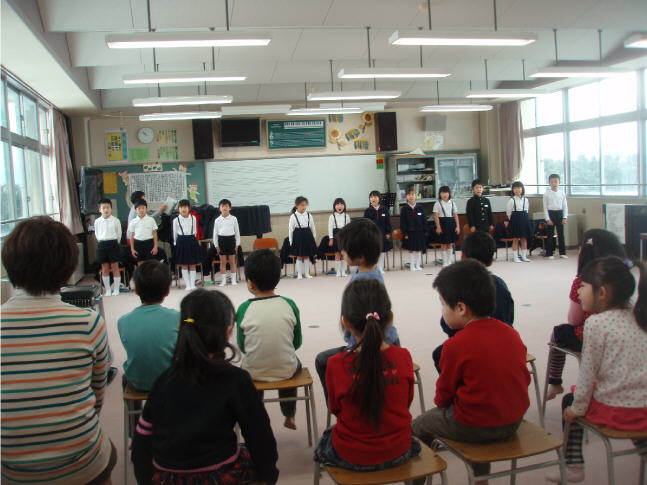 さて、10時30分より新一年生の体験入学をしました。1年生は、学校では一番下の弟、妹になりますが、今日だけはお兄さん、お姉さんです。早速、音楽室で、「森のくまさん」「アイアイ」などを歌って元気な声を披露して盛り上げた後、学校を案内して保育所との違いを見て回りました。どの子も楽しそうで、笑顔で1年生と一緒に活動していました。早く4月になって、元気な1年生が入ってくる日を待ち望んでいます。