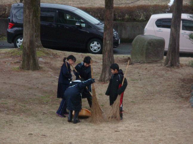 6限目に委員会活動がありました。学校には、放送、健康、体育、さわやか、企画、図書、飼育の七つの委員会があります。どの委員会も真面目に取り組んでいるところがとてもいいです。児童の下校前に外を覗いてみると、さわやか委員が一生懸命に前庭の掃除をしていました。最近は雪が降ったり雨が降ったりで前庭が落ち葉がたまり、見苦しい状態でした。掃除をした後はさっぱりきれいな学校になり、嬉しくなりました。児童の皆さん、お掃除をありがとう。