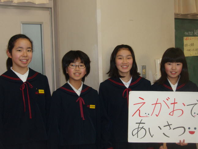 なお、下の写真は、学校の挨拶運動で、職員室であいさつをした6年生です。立派に育っていますよ。