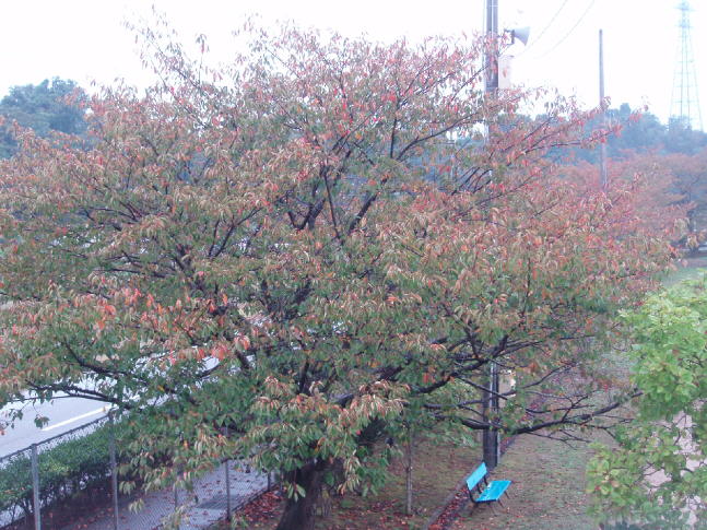 学校から外を眺めると、秋を感じます。ススキの穂、柿が黄色に、コスモス、そしてそばの白い花。それから、運動場の外周には、桜の木々が赤や黄色に色づきました。秋の風情を人それぞれに感じながら過ごしましょう。理科室から撮影した桜の画像を載せます。