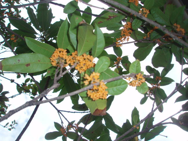 一昨日、1年生が下校時間に玄関前でみんな揃うのを待っていました。そこへ、1年生の担任がある花の前に全員を連れてきて「この木はなんという名前でしょう。」と尋ねました。1年生は分からないのですが、「いいにおい」「すっごくにおいする」と喜んでいました。たまたま自分も前庭にいましたので、花の匂いをかぐことができるように枝をたぐり寄せて花を見せてあげました。「金木犀」の匂いでした。
