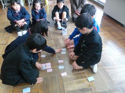 今年も大海小学校伝統の百人一首大会を行いました。2,4年生は1/25(木)に、1,3,5,6年生は本日(1/26)行いました。大海小の伝統だけに、低学年の子どもたちも上の句を詠みあげると、「ハイっ」と元気良く反応して札を取っていました。どの学年も真剣な表情で札を取ることに集中していました。